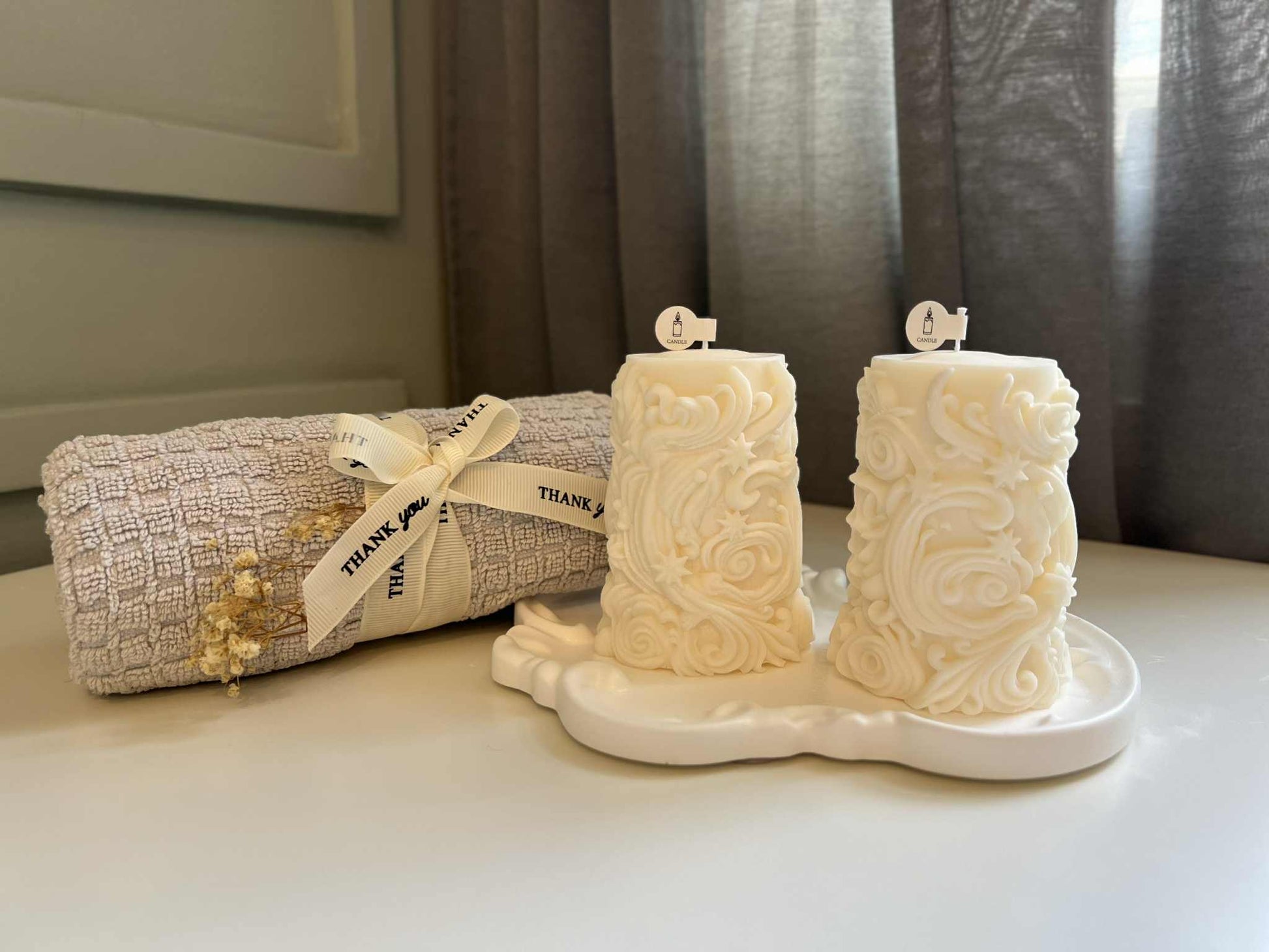 Handmade Baroque Pillar Candle – Luxury Decorative Design
