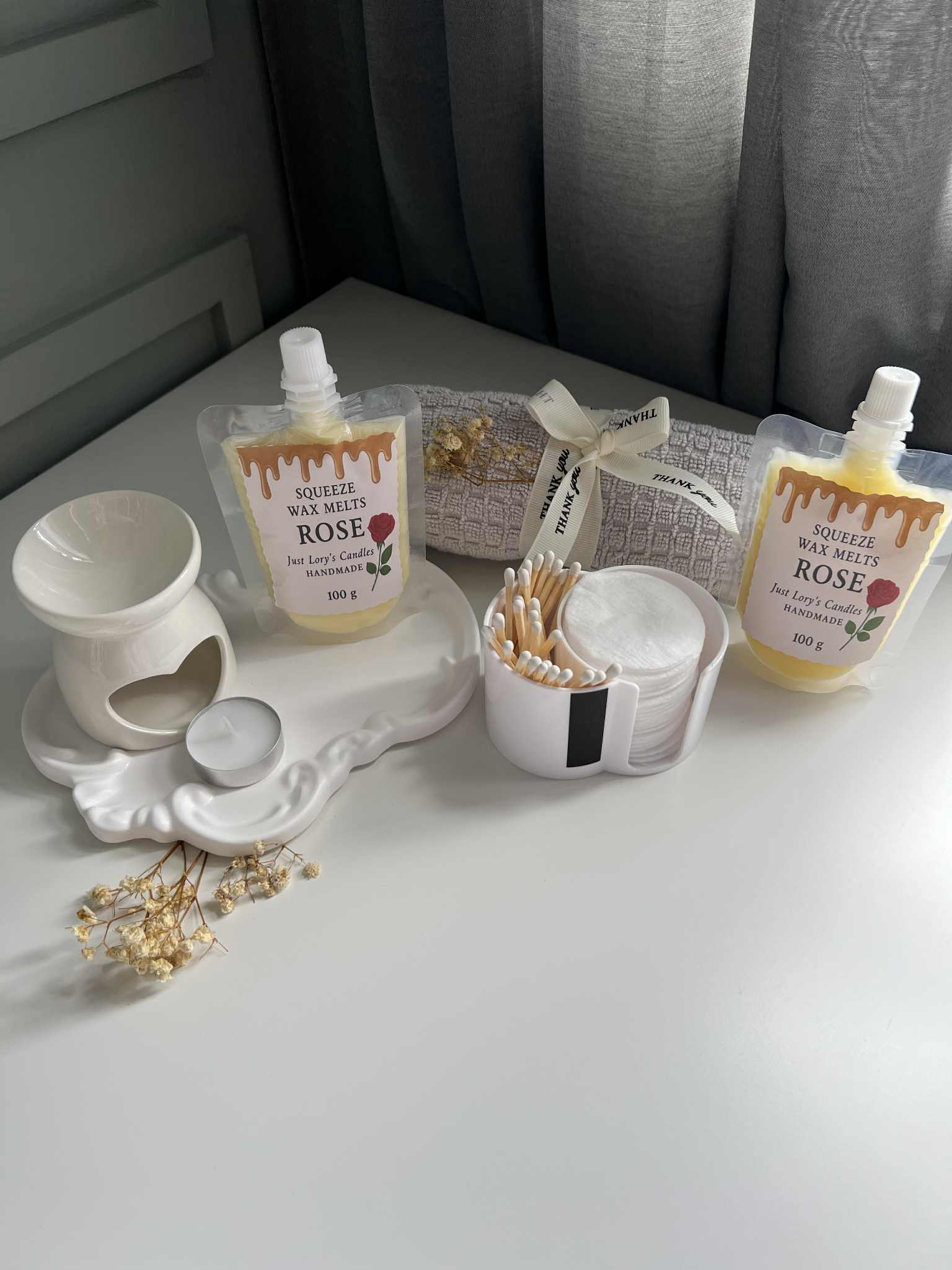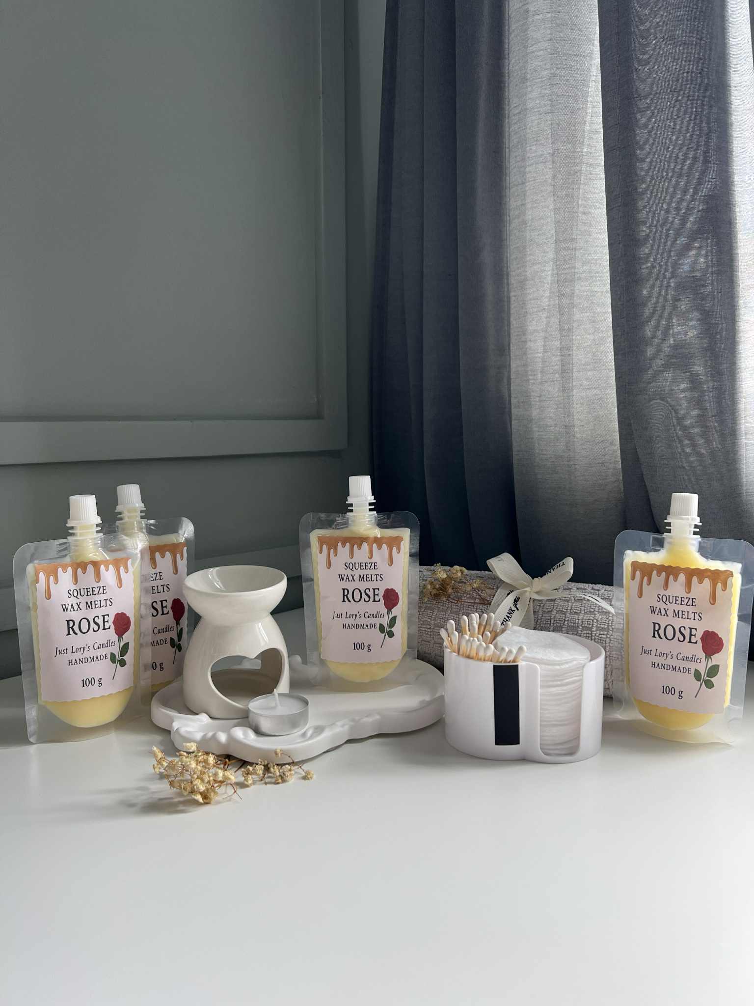 • 6 × 100 g Squeeze Wax Melts (Rose, Jasmine, Cinnamon,Strawberry ,Vanilla, Lavender)