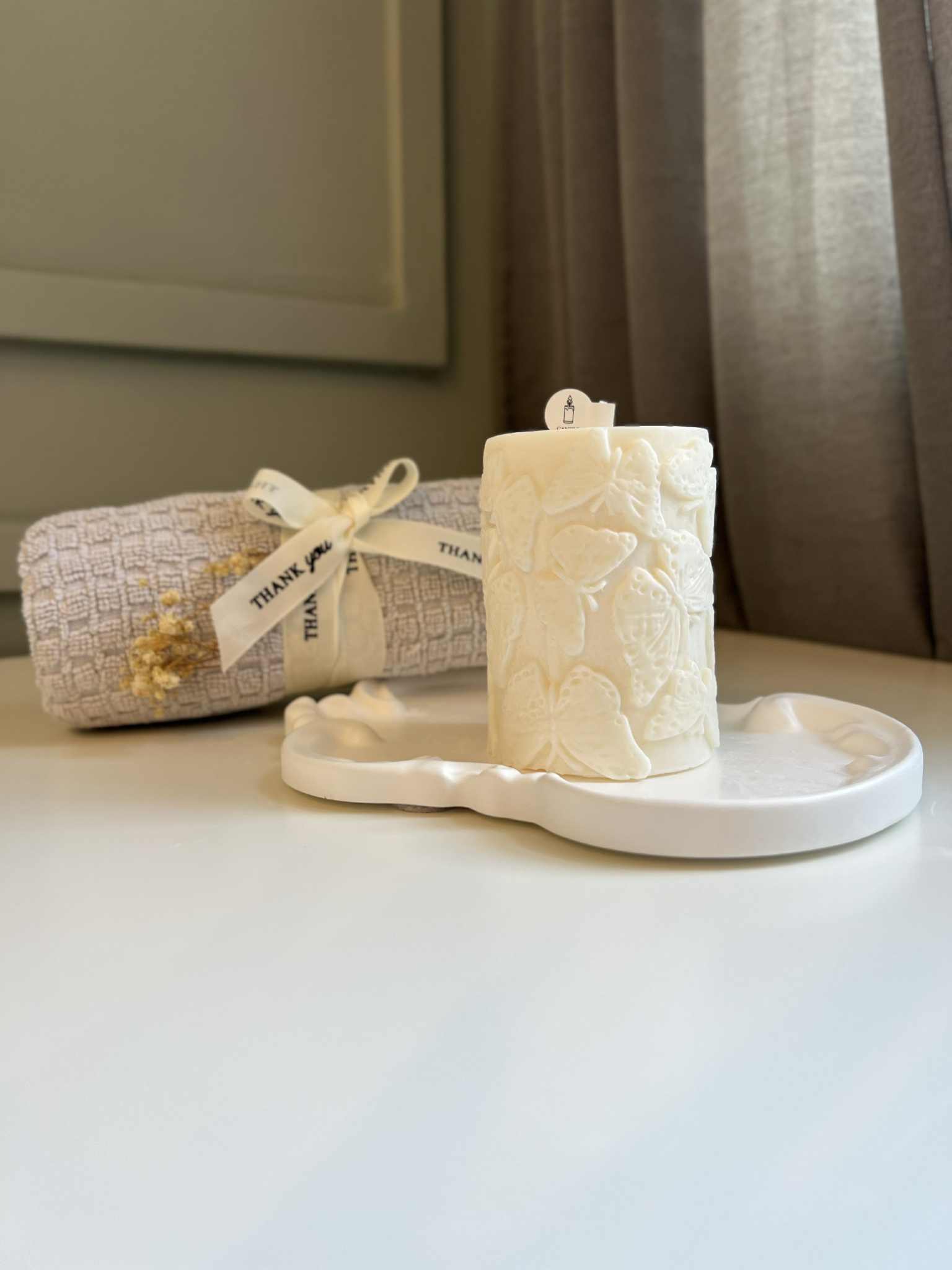 Butterfly & Floral Candle Duo, 3D – Handmade Decorative Set