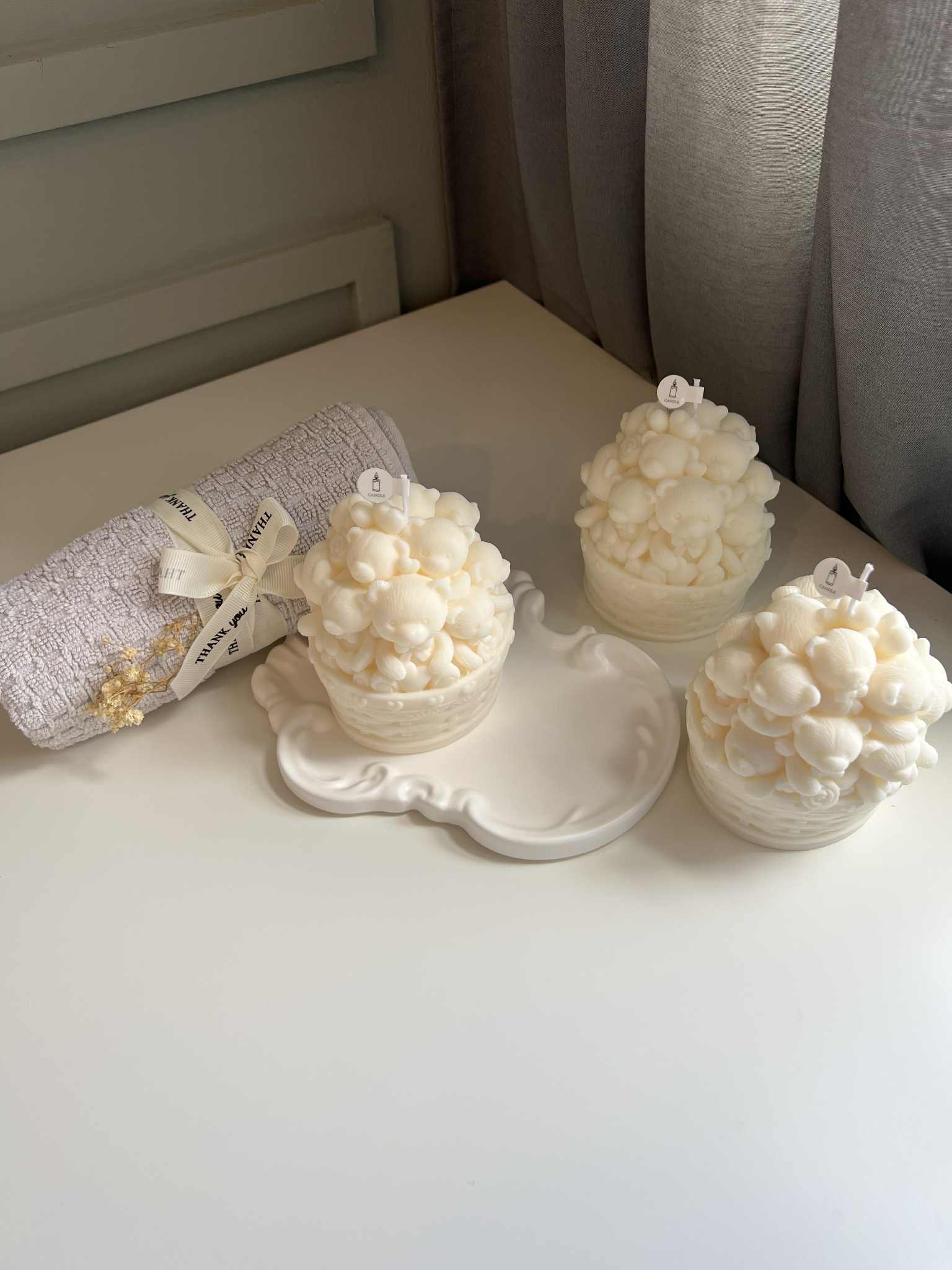 Create a magical and cozy atmosphere with our adorable Teddy Bear Basket Candle. Hand-poured with love, this charming candle features a basket overflowing with cute teddy bears, perfect for adding a touch of sweetness to any room.